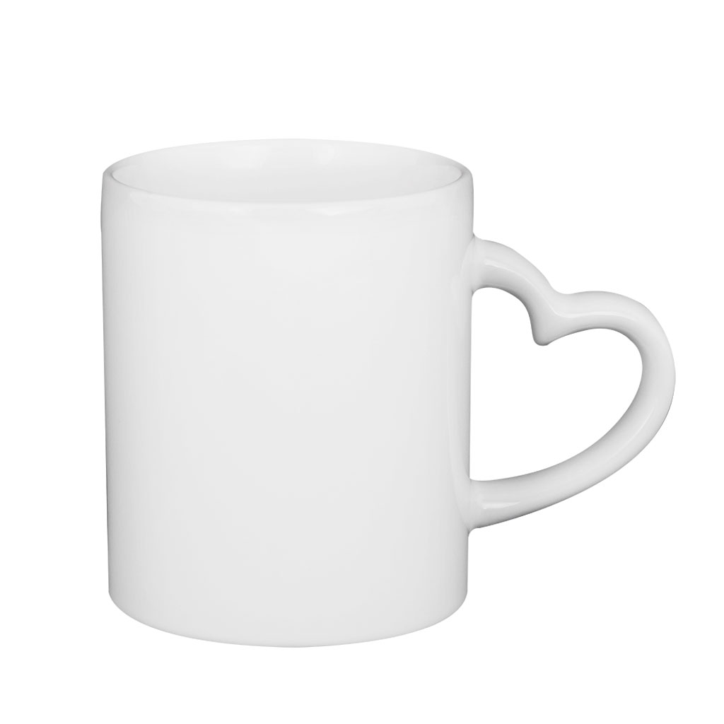 Bílý keramický hrnek o objemu 260 ml s ouškem ve tvaru srdce. Lze potisknout levou i pravou stranu, nebo obě strany najednou. je vhodný jako originální dárek k narozeninám či k Vánocům, pro partnera, rodiče nebo prarodiče, například s fotkou a vzkazem, popř. jako reklamní předmět.
